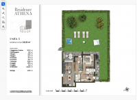 Questo appartamento è situato al piano terra con giardino, ingresso sulla zona living con angolo cottura, tutti gli ambienti affacciano sul giardino. Il disimpegno porta alla zona notte dove troviamo 3 camere da letto. Due sono i bagni uno dei quali finestrato.