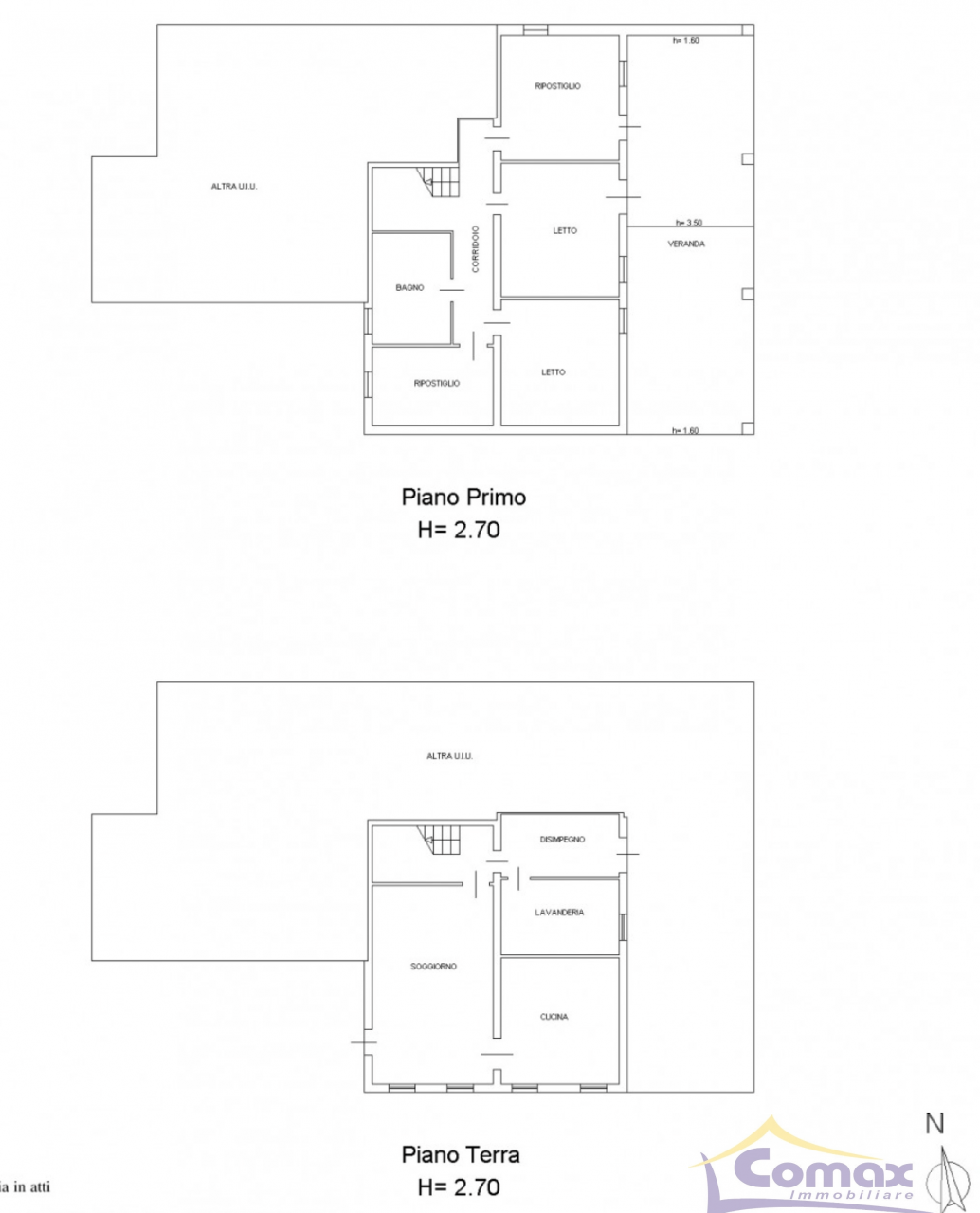 Le unità abitative sono accostate, disposte su 2 livelli, la prima unità è di c.a. mq. 220, la seconda più recente è di ca. mq. 250, con portico e ampio terrazzo finestrato panoramico.